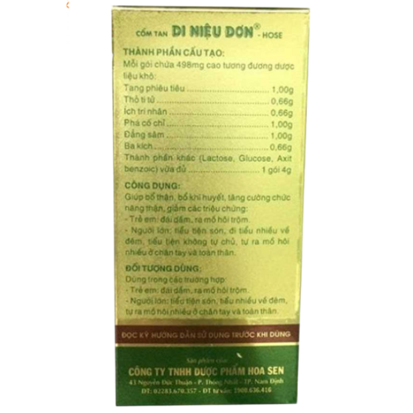 Di Niệu Đơn (cốm) giúp bổ thận, thích hợp cho người lớn có chức năng thận kém có biểu hiện như: