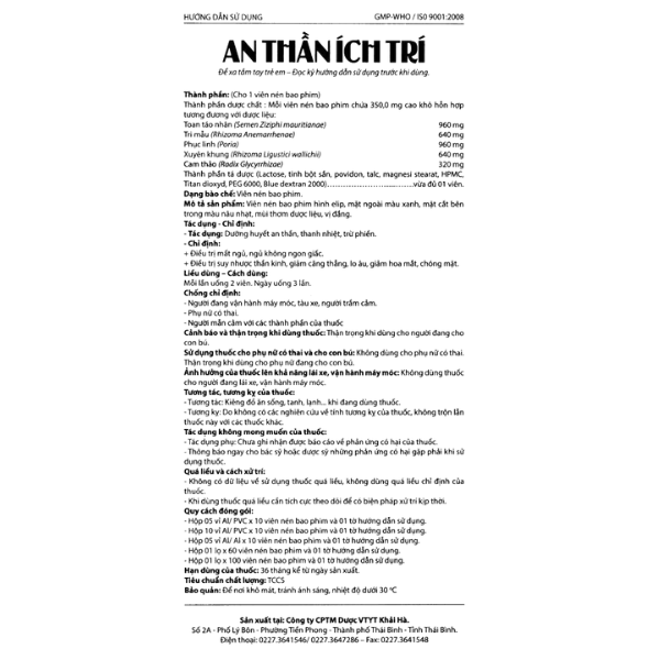 Công dụng thuốc An Thần Ích Trí điều trị mất ngủ và suy nhược thần kinh