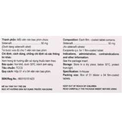 - Thành phần hoạt chất: Sildenafil 50mg (Dưới dạng sildenafil citrat).