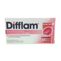 Viên ngậm viêm họng Difflam là thuốc chuyên trị các chứng viêm, sưng đau ở cổ và họng, viêm họng mãn tính, viêm amedan,… Thành phần dược chất chính gồm có Benzydamine hydrochloride có tác dụng giảm đau, chống viêm tác động tại chỗ để làm giảm các tình trạng viêm ở miệng và họng. Viên Difflam vị dâu rừng, không đường và thích hợp cho bệnh nhân tiểu đường.