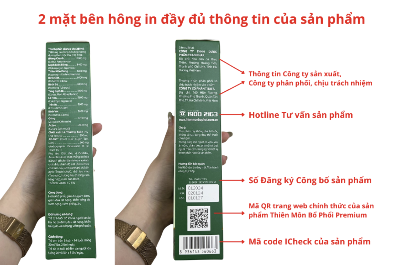 - Sản phẩm chính hãng: Titafa đảm bảo cung cấp Thiên Môn Bổ Phổi Mới với nguồn gốc rõ ràng, có tem chống giả và mã vạch xác thực từ nhà sản xuất.